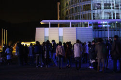 町おこしの一環として、こども家族館の壁面にプロジェクションマッピングをしました。