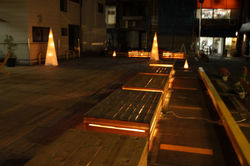 テラスにある植栽をライトアップしたり、ベンチの中に光源を入れて隙間から光が漏れるように光源を配置しました。